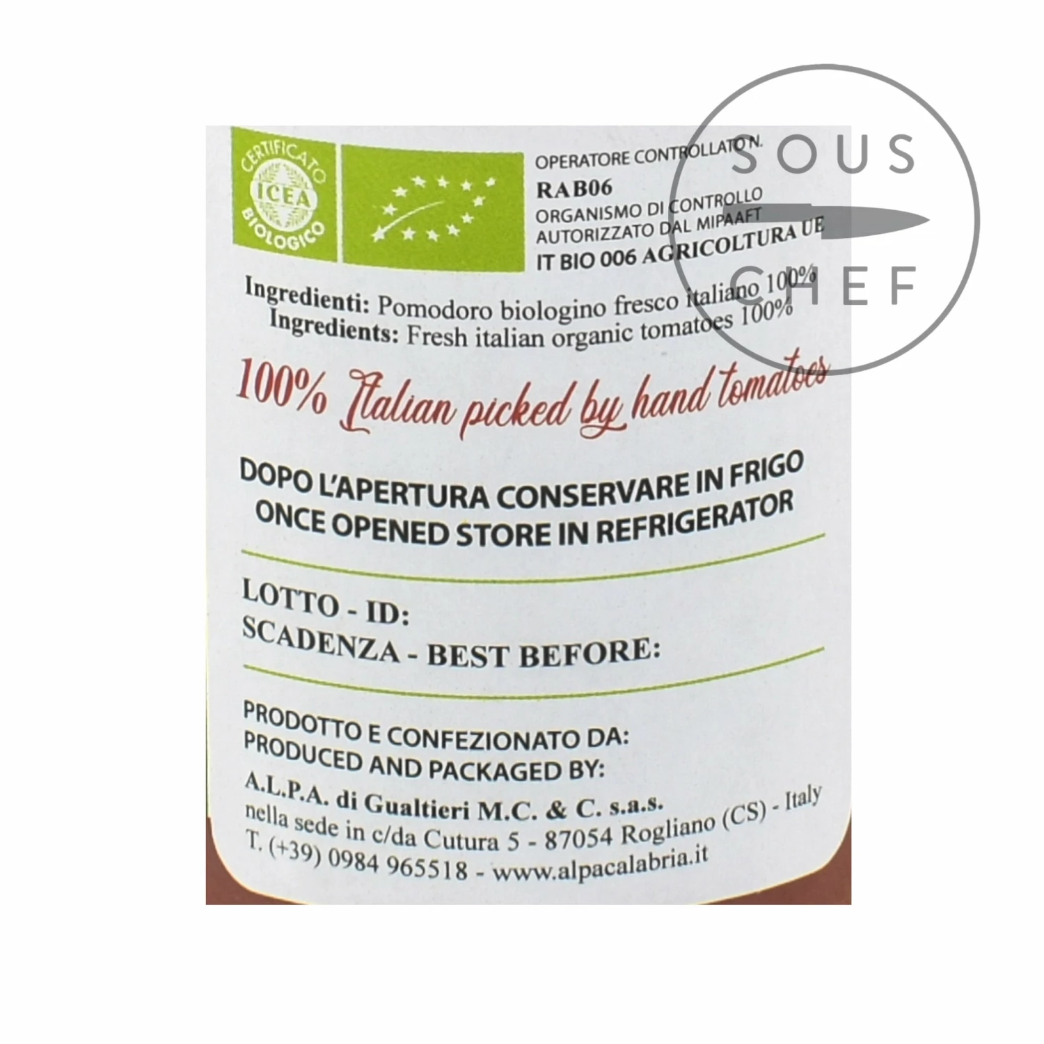 Organic tomato passata is a ready-to-use tomato sauce for pizzas, pasta and stews. The smooth passata is made with 100% organic Italian tomatoes – absolutely nothing else.
