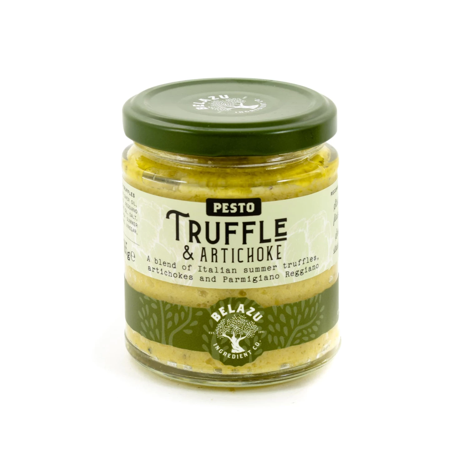 Belazu truffle and artichoke pesto is made with artichokes from Puglia, black truffles from Piedmont and quality aged Parmigiano Reggiano. This full-flavoured, punchy pesto is fantastic served with poached eggs and asparagus, or simply stirred through pasta for a quick and flavourful dinner.