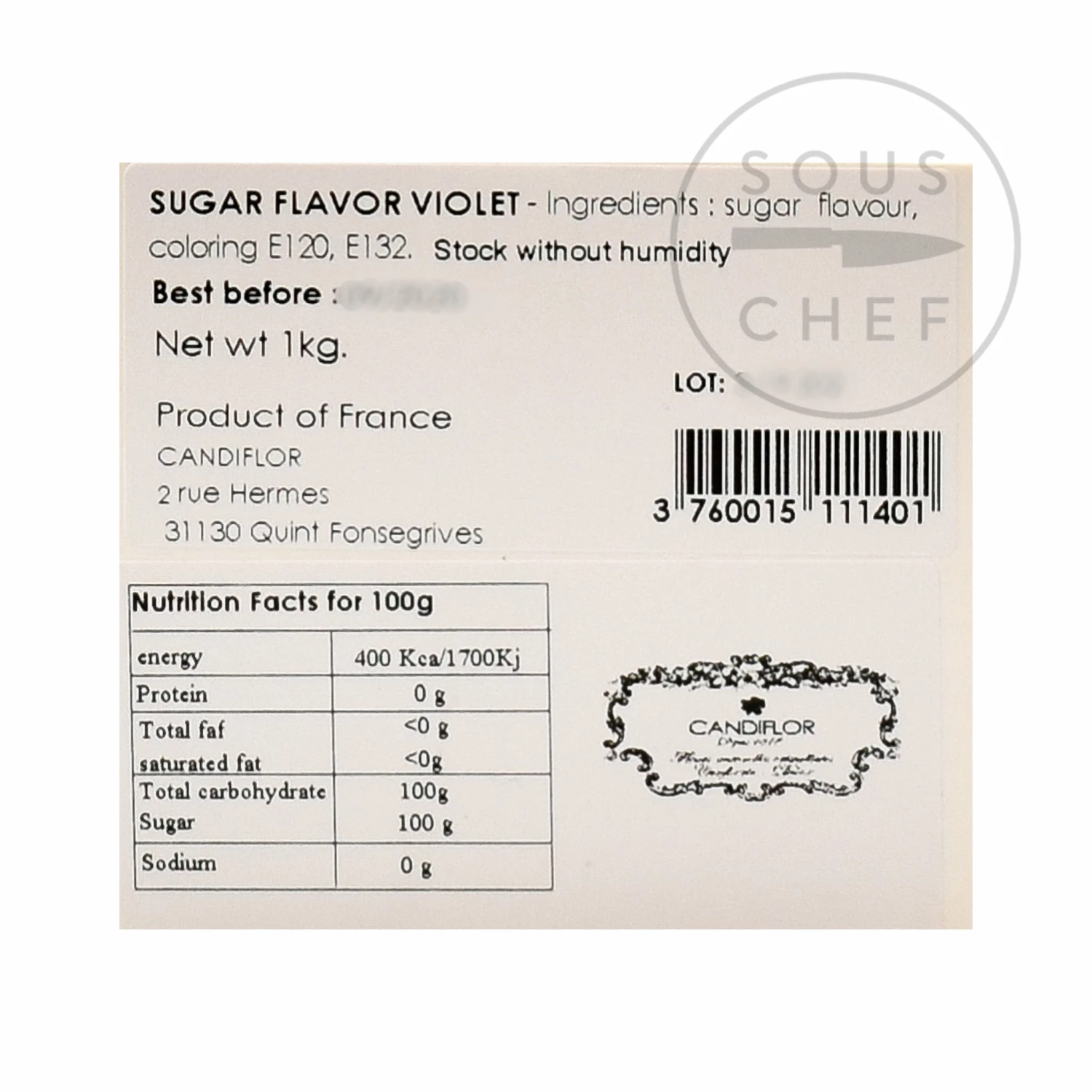Use violet sugar to decorate iced biscuits, cupcakes, and even the rim of cocktail glasses. The vibrant purple sugar has a hint of floral violet aroma.