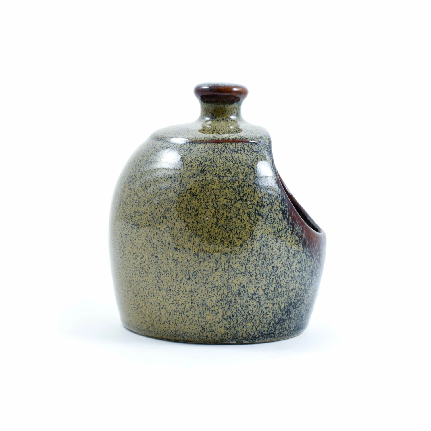 The interplay of deep blue-green and sandy glaze seems to shift in the light and captures all the colours of a coastal landscape – tree-covered cliffs, sandy beaches and multi-hued ocean. The Lagoa salt pig also features touches of striking deep terracotta around the rim and handle.