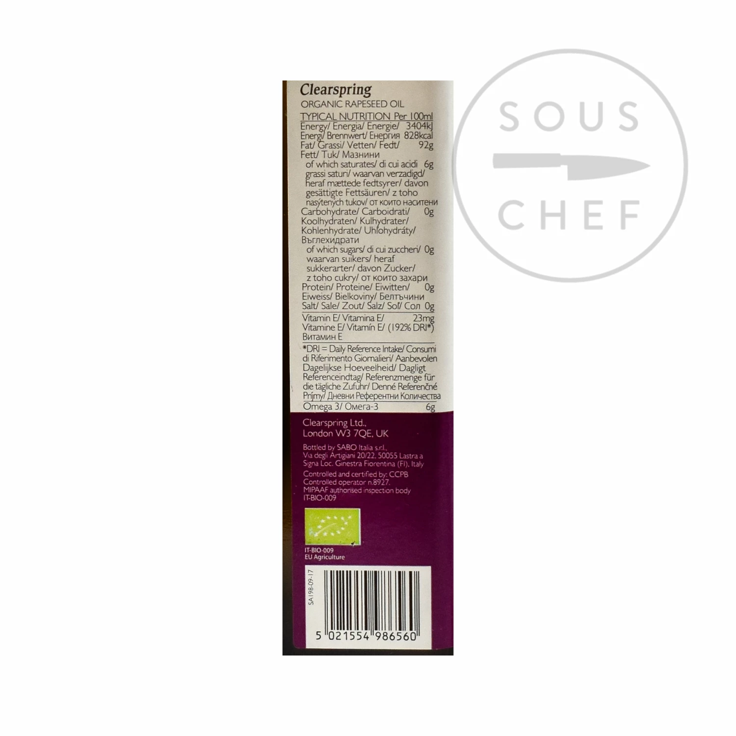 Clearspring organic rapeseed oil, also known as canola oil, is said to be one of the healthiest culinary oils available. Unrefined rapeseed oil like this one is low in saturated fats, high in Omega 3 fatty acids and rich in vitamin E. This makes it even healthier than olive oil!