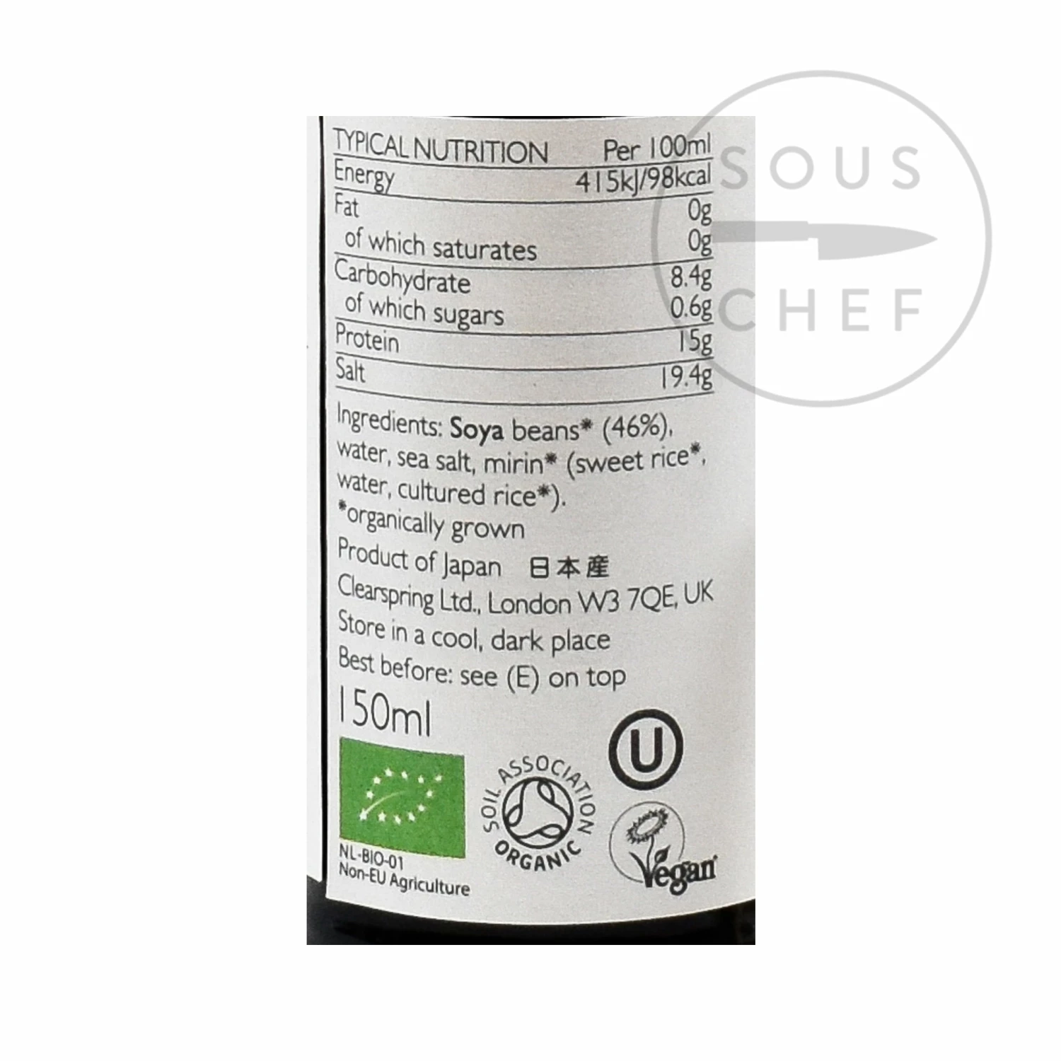 Ingredients: organic soya beans (46%), water, sea salt, organic mirin (organic sweet rice, water, cultured organic rice). Contains allergens: soya.