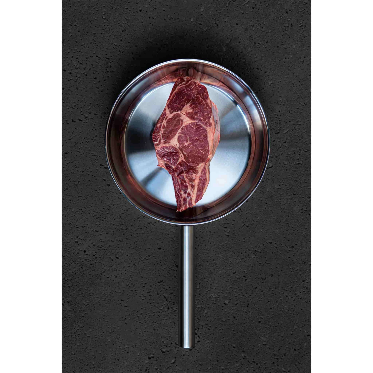 COMBEKK’s recycled stainless steel frying pan is a premium quality stainless steel pan that is made from 100% recycled materials. Designed for both professional kitchens and home use, this long-lasting and durable pan is ideal for frying all cuts of steak and other large joints of meat. The generously raised edge also makes it great for sauces, stews and curries.