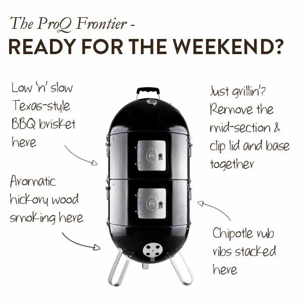 The ProQ Frontier has been updated with even more features to make the ProQ Frontier Elite 3in1 BBQ Smoker!
