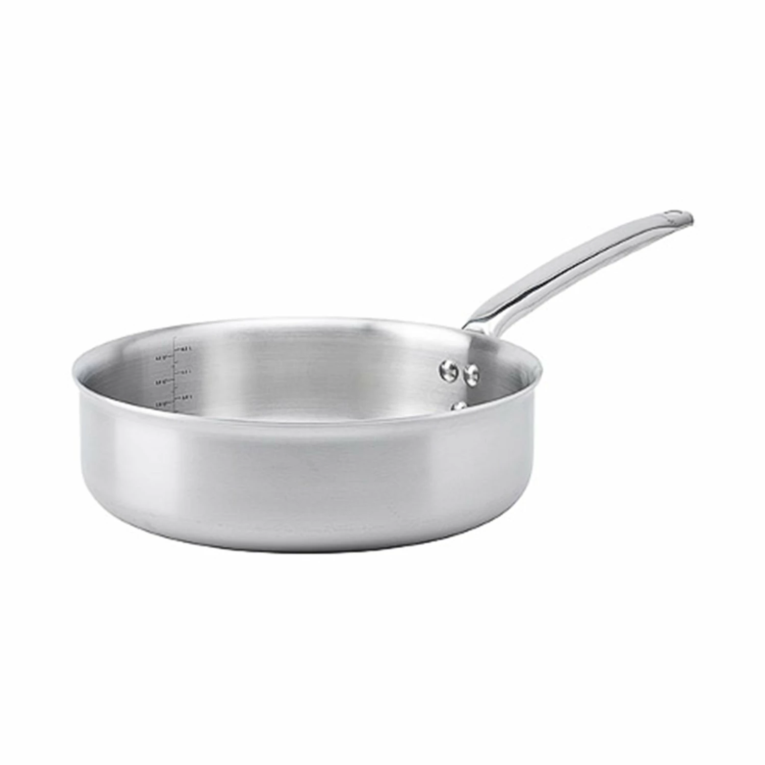 The saute pan has an ergonomic handle, cast from stainless steel and riveted to the pan for durability.