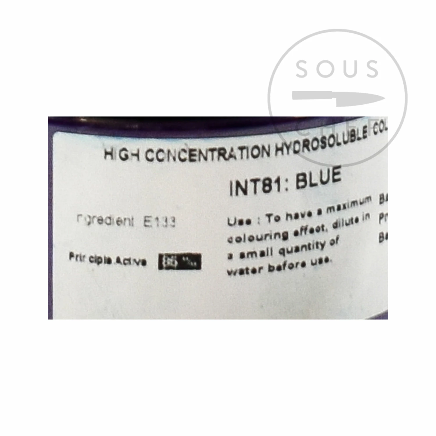 The blue food colour is water soluble. For maximum effect, dilute in a small amount of water before use. Recommended use is 1tsp of colouring in 1tsp water to colour 2kg of sugar. Contains 50g, or approx 60ml, or 12 tsp – enough for 24kg sugar.