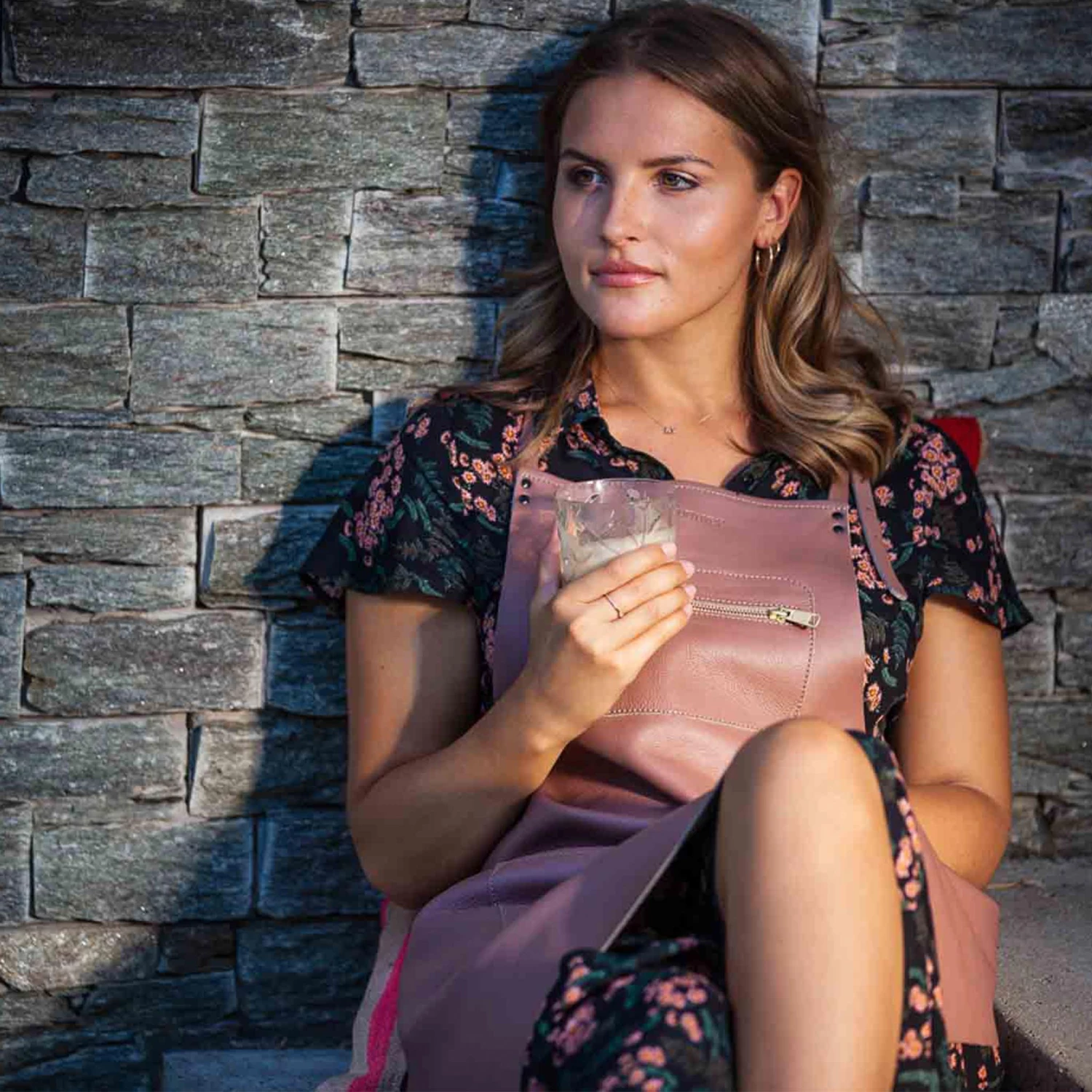 The classic black leather zipper apron is hand made from 100% full grain leather and finished with a transparent dirt-repellent coating. The leather will get softer and develop a patina over time, so the more you wear it, the better it will get. The apron has a large front pocket at the waist, and a smaller breast pocket with brass zipper detailing. The neck strap is fully adjustable.