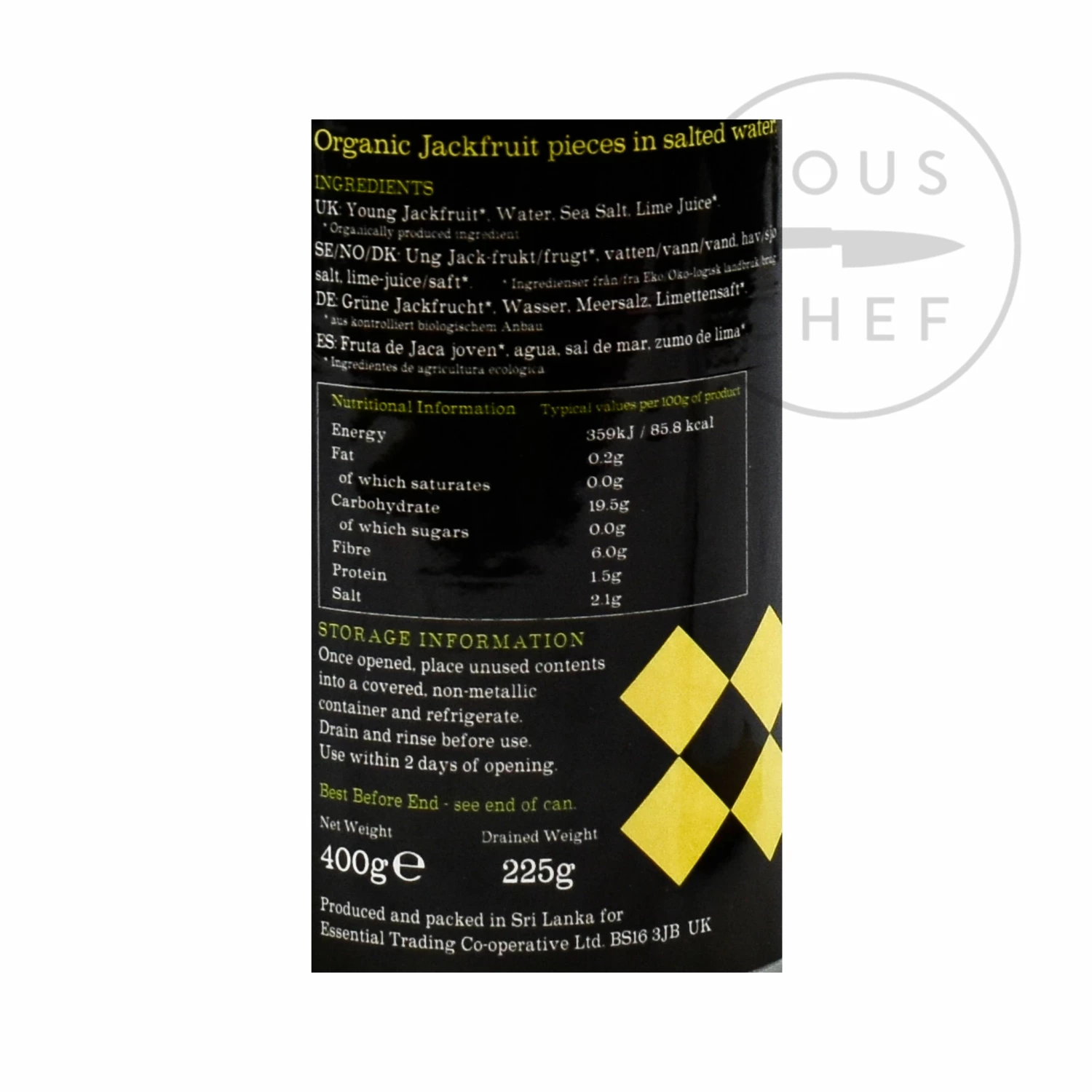 Ingredients: organic young jackfruit, water, sea salt, organic lime juice.