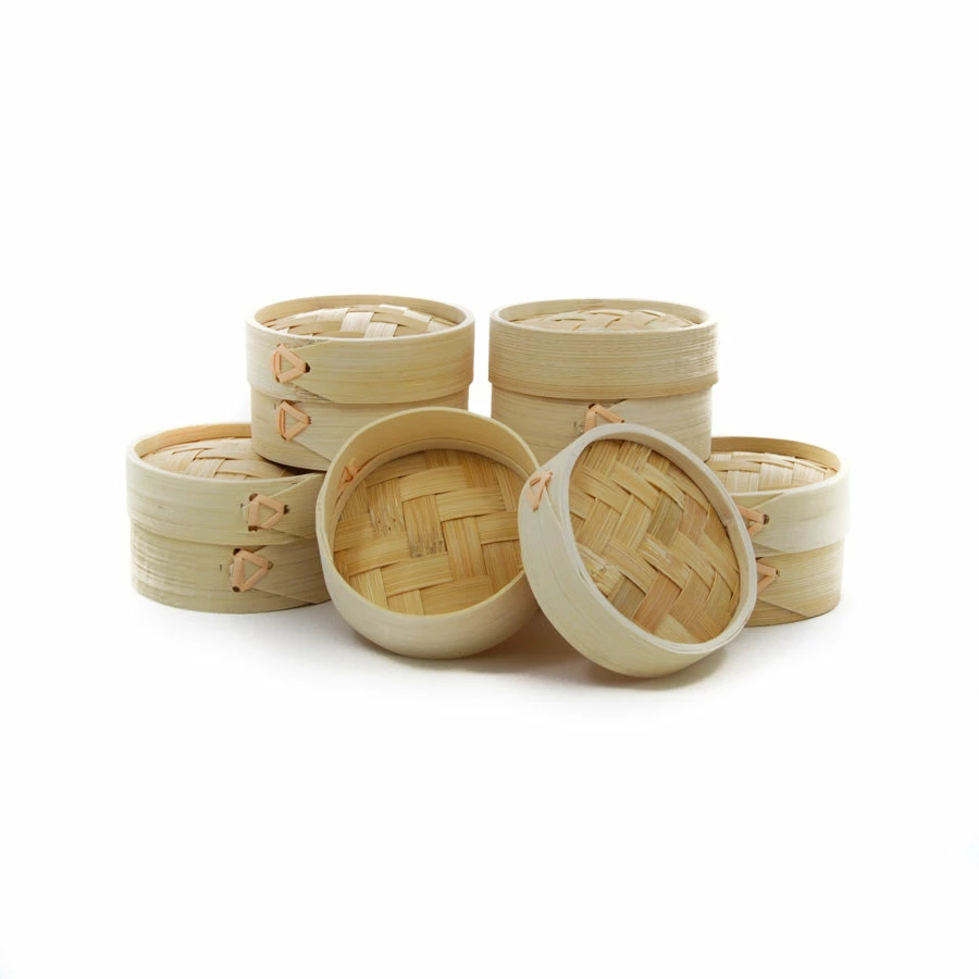 Mini bamboo steamers are a delightful way of both steaming and presenting canapés and amuse-bouches. Each mini bamboo steamer is the perfect size for serving an individual dumpling.
