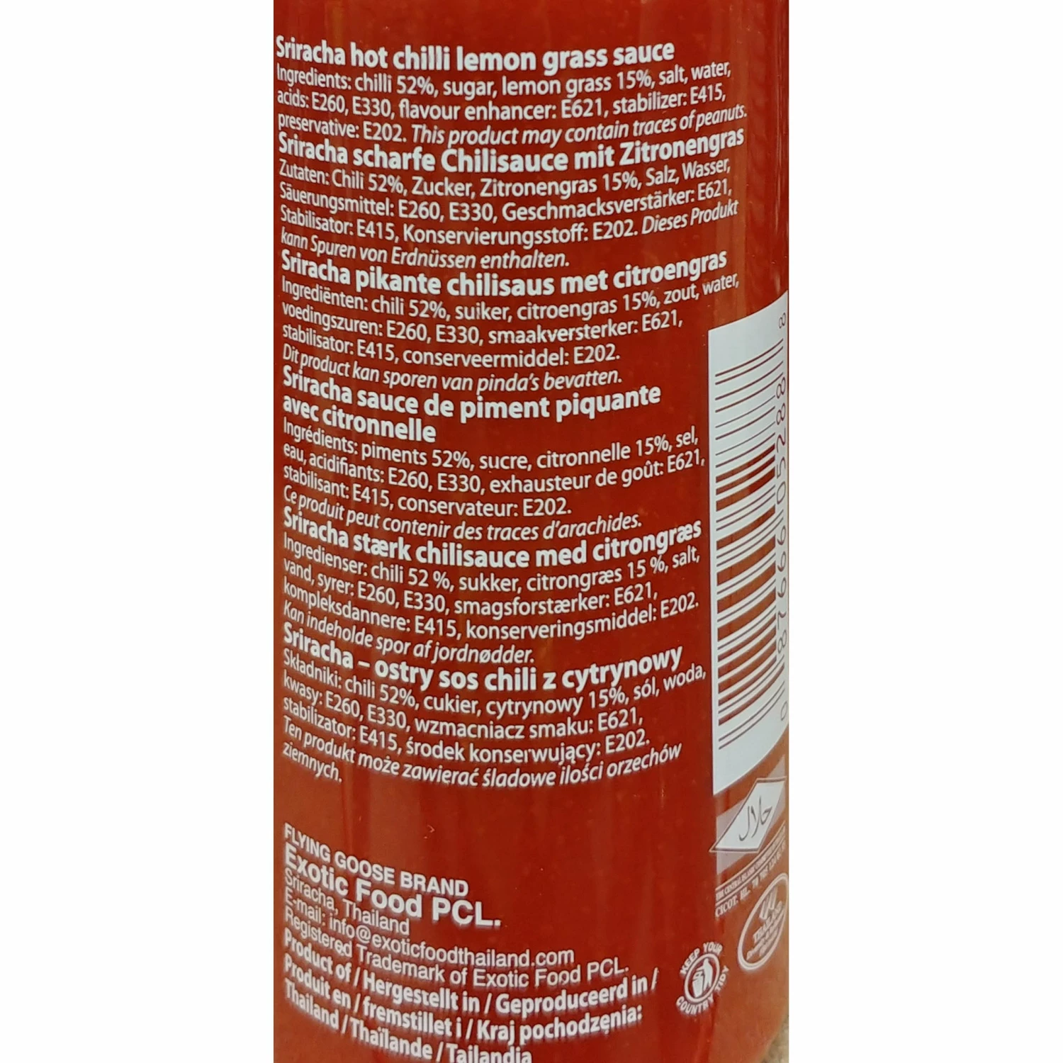 Flying Goose Sriracha with Lemongrass is Thailand’s most famous chilli sauce, but with added Thai citric-floral notes. The lemongrass sriracha is a little milder than the other Flying Goose sauces, letting the lemongrass flavours shine through. Sriracha sauce is named after the coastal Thai city, Si Racha. Ideal with fish and seafood.
