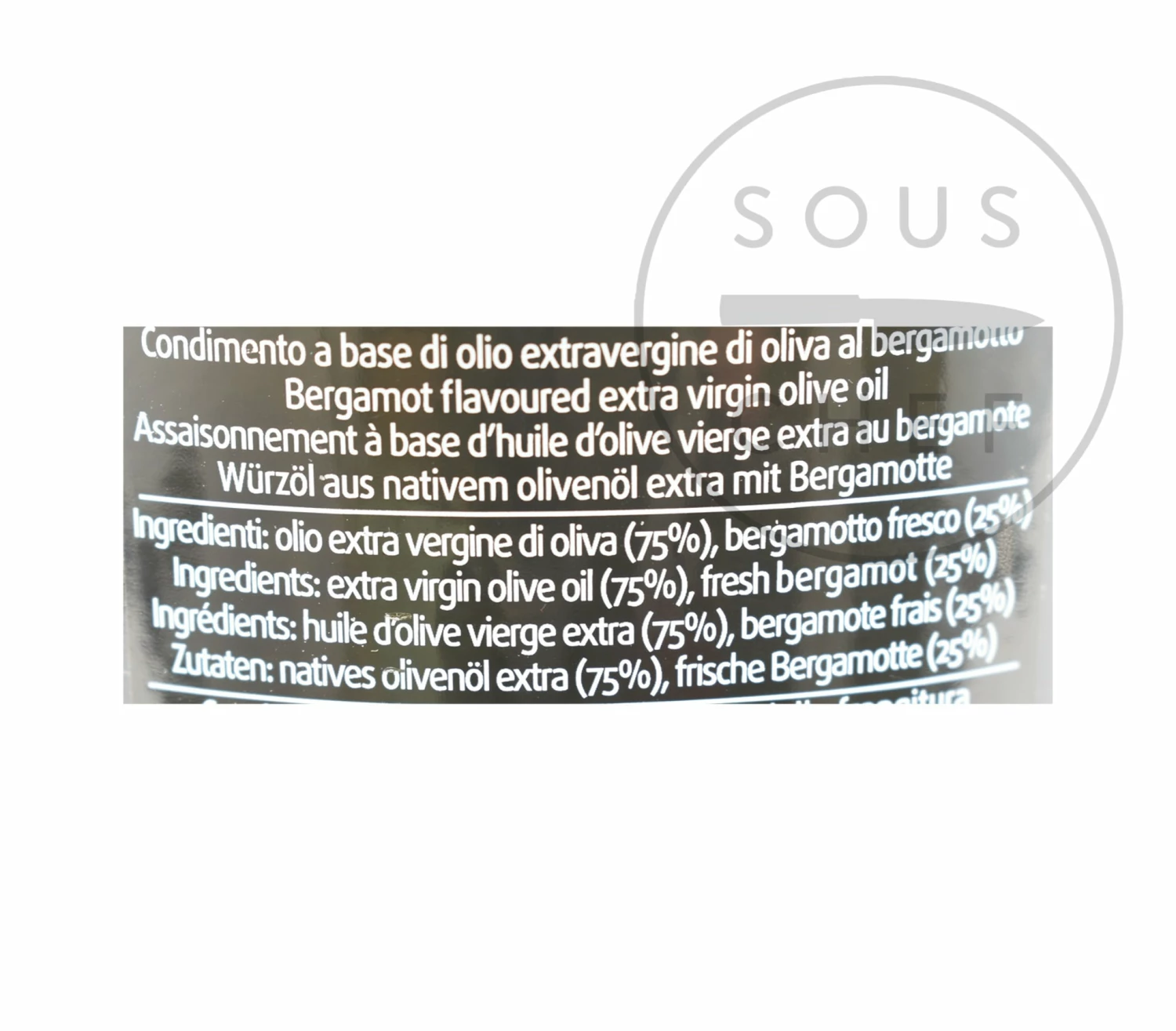 Ingredients: Extra virgin olive oil (75%), fresh bergamot (25%)
