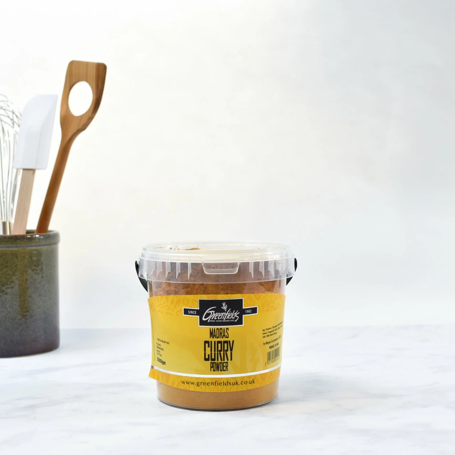 Curry powder madras from Greenfields, a second generation UK-based family business. Greenfields’ herbs and spices are used by restaurants, artisans and street food producers across the country – all who enjoy their great value, kitchen-safe and easy-to-use resealable plastic tubs for their ingredients. Their philosophy is to provide good quality products at a great price.