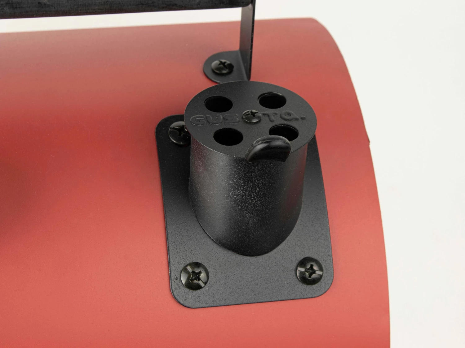 The smoker is a mini version of the classic ‘oil drum’ shape. Fill the bottom of the BBQ smoker with charcoal and use as a conventional barbecue. Or use the marked sections to burn charcoal and wood chips just on one side – close the lid, adjust the vents, and you have yourself a smoker!