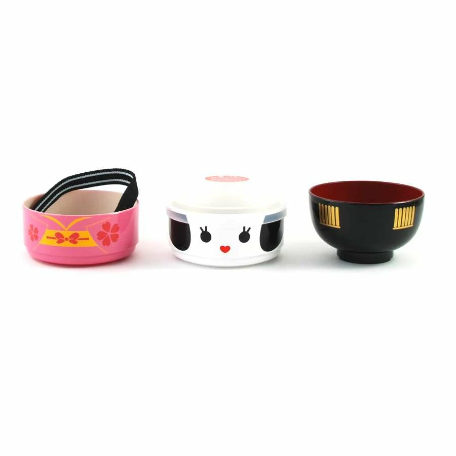 This purple geisha, or princess-style bento box splits into three sections and is a fun and practical way of storing meals. The top, ‘hat’ section is an inverted bowl – tuck a small sachet of instant miso soup into here whilst travelling, and just add hot water when ready to eat. The second ‘face’ level has a hermetic seal for storing stews or dressed salads without leaking. The bottom ‘body’ level is a perfect container for buns, sushi or rice.