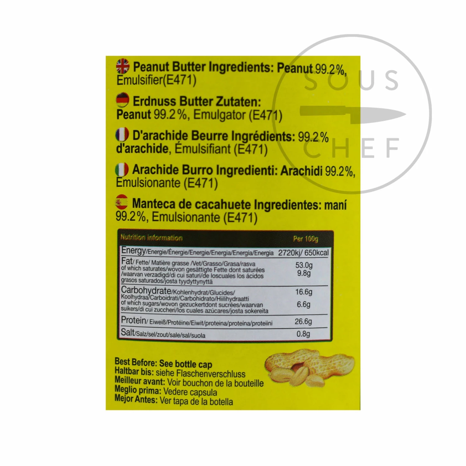 Ingredients: Peanut 99.2%, Emulsifier (E471)