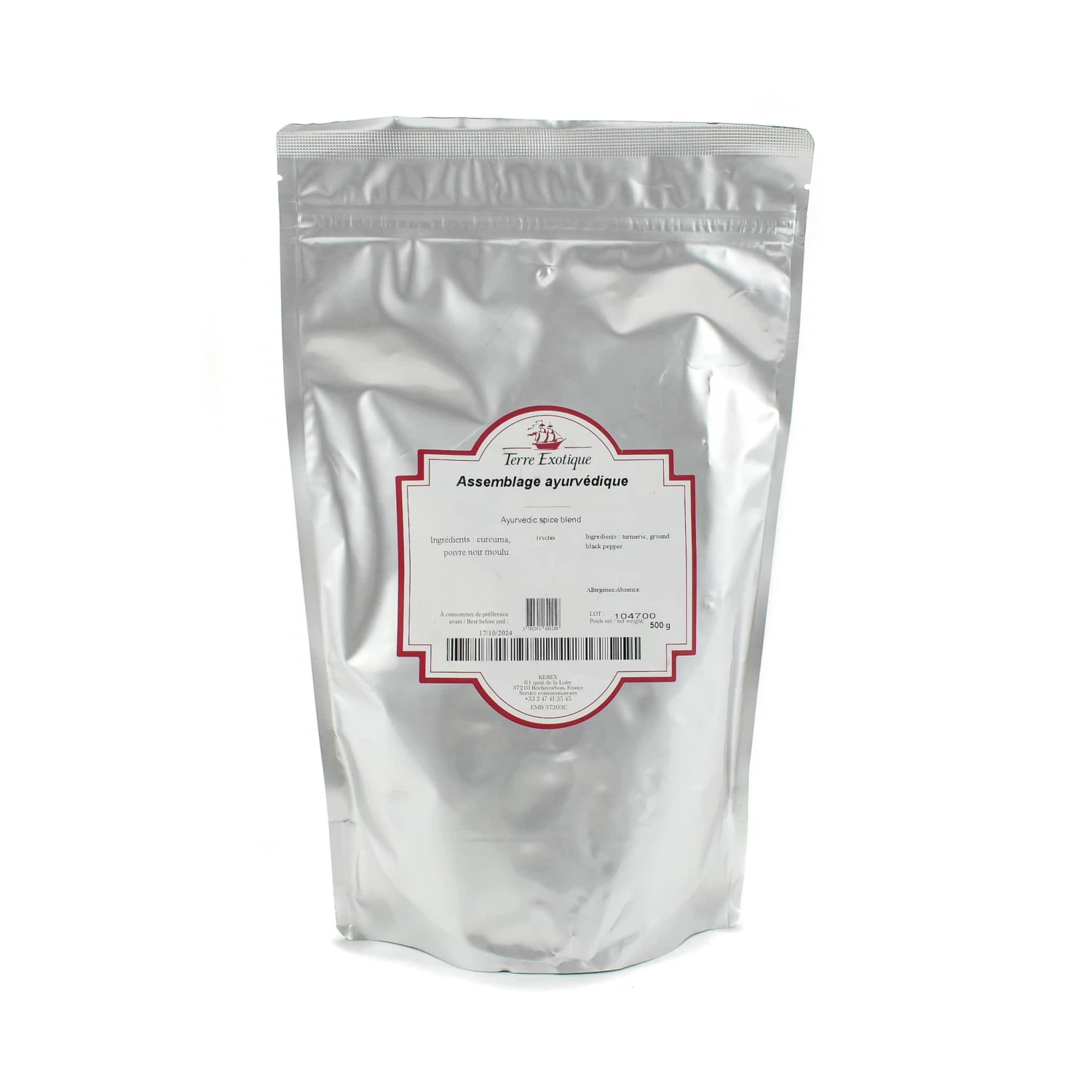 Terre Exotique’s organic Ayurvedic spice blend is a mix of musky turmeric which is offset with bitter notes of black pepper. It brings warm fragrance and vibrant colour to curries, sauces and stews. Ayurvedic spices originate from the Indian subcontinent, historically thought to have medicinal properties, but continue to be used across Asia for their gentle aromatic balance of flavours.