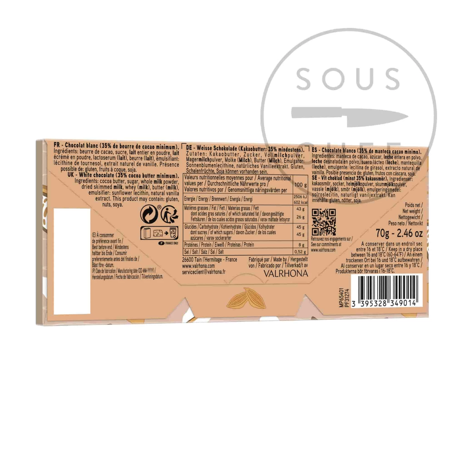 I’m a big fan of Valrhona, and this blonde chocolate doesn’t disappoint. It’s smooth, creamy, and not overly sweet. Great quality for the price.