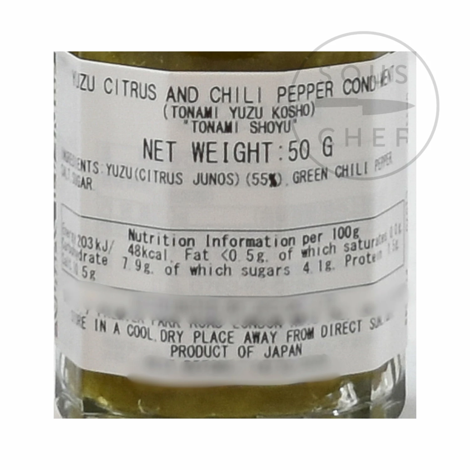 Ingredients: Yuzu (citrus junos), green chilli pepper (42%), salt, sugar.