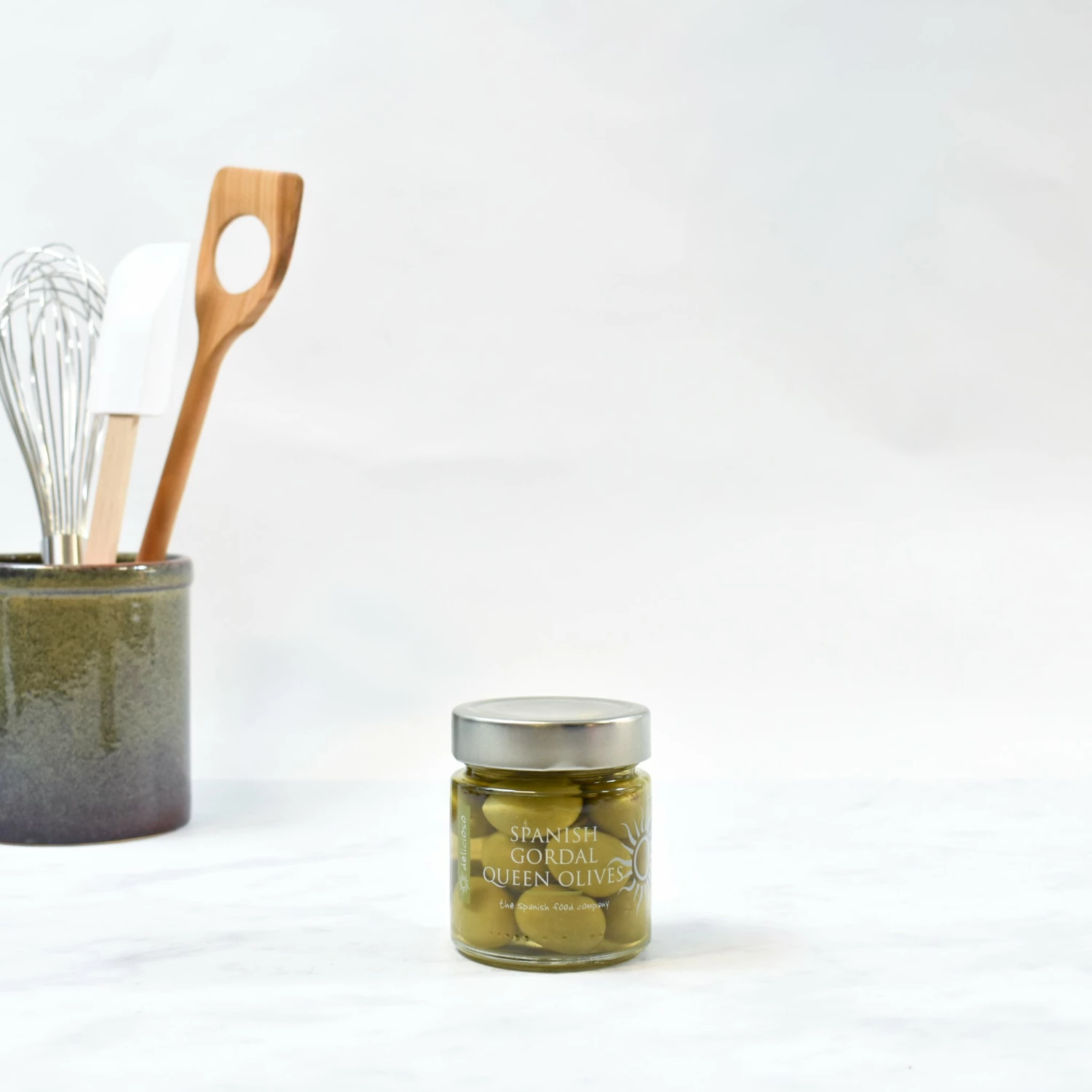Whole Gordal olives – also known as ‘Queen’ olives – are very large green olives from Spain. Firm and plump with a fruity flavour, the olives are delicious on their own as a simple tapas dish. Also try serving the Gordal olives as an appetiser with Martinis or a dry sherry before dinner, or as part of an antipasto alongside cured meats and cheeses.