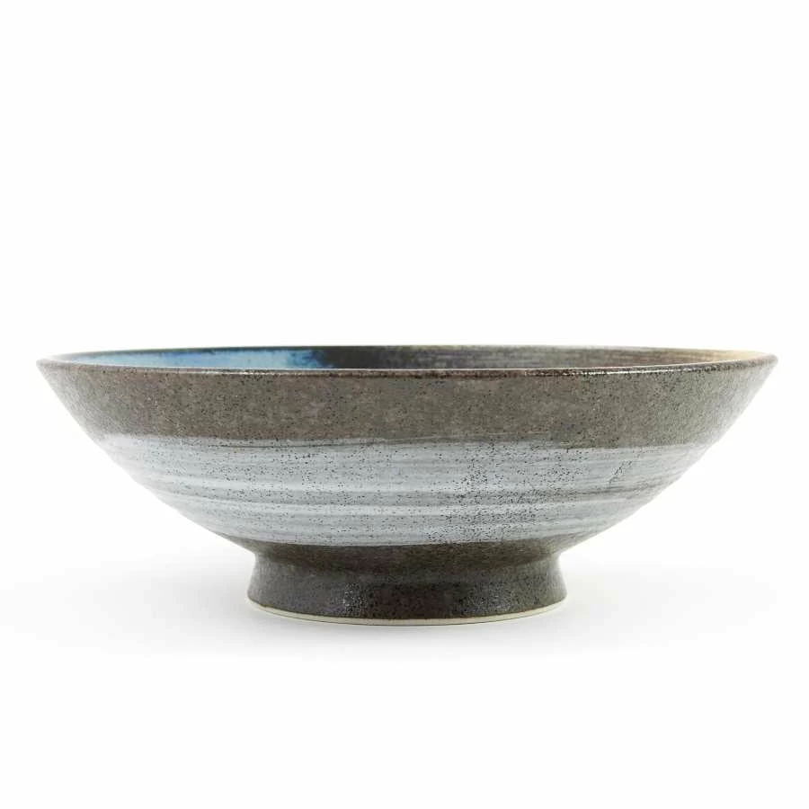 Large, beautifully patterned Japanese stoneware serving bowl, used for sharing dishes.