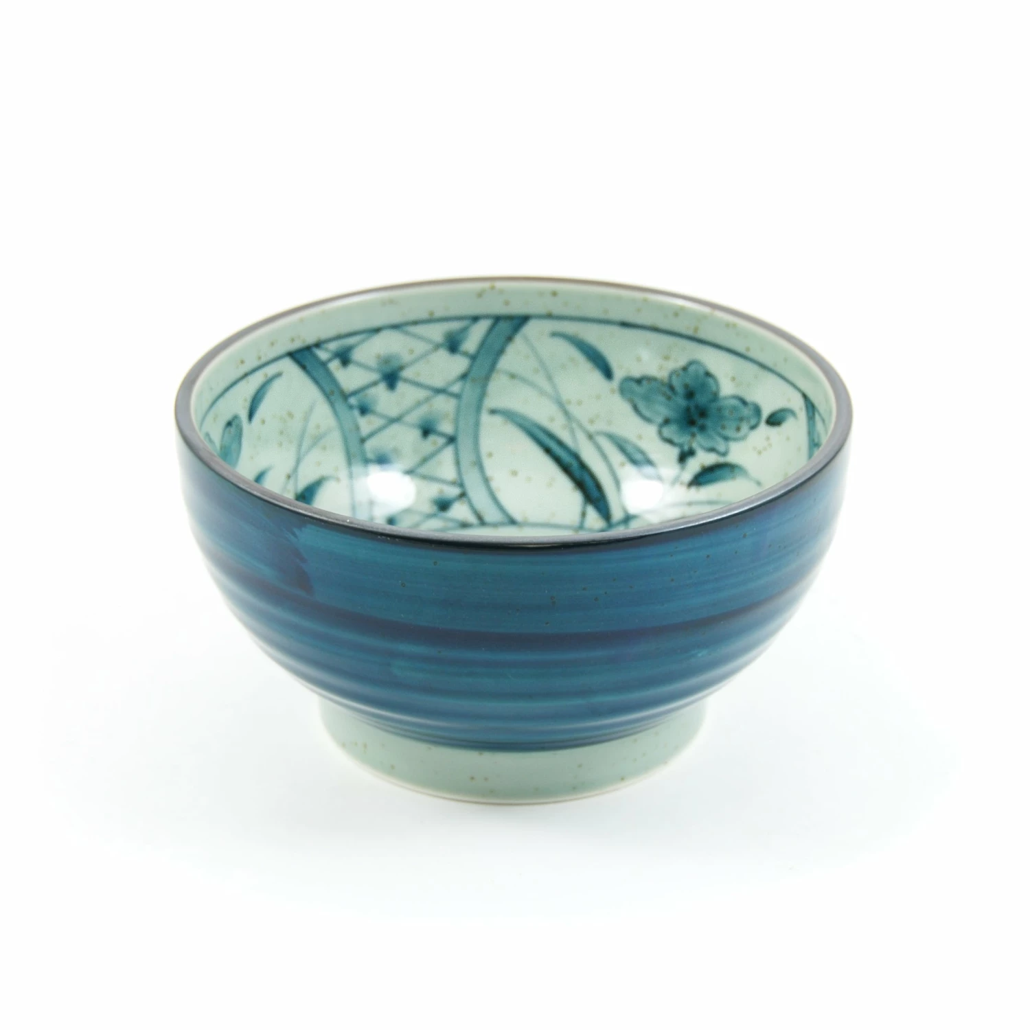 Attractive Japanese stoneware bowl, traditionally used for kamaage udon, a hearty noodle soup dish.