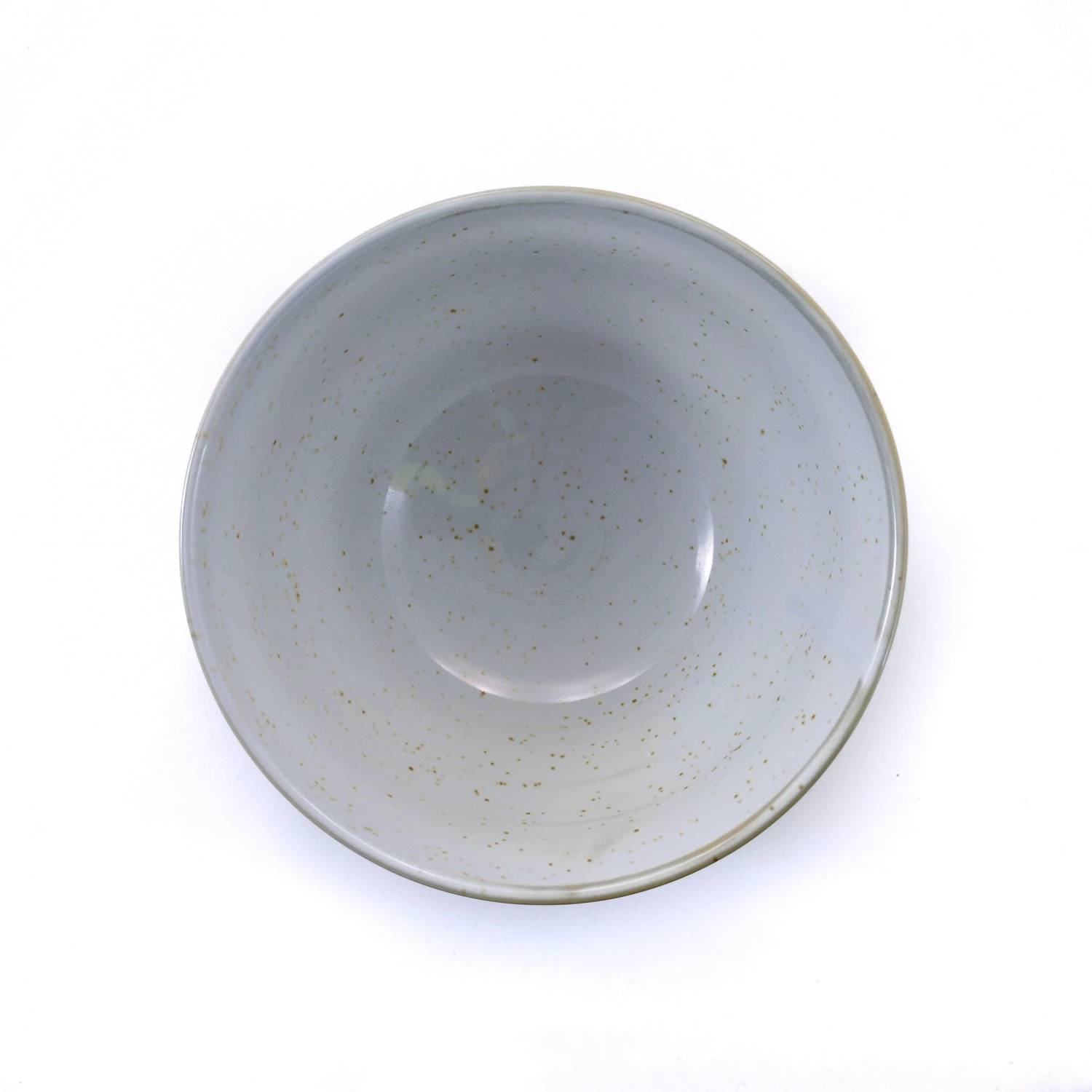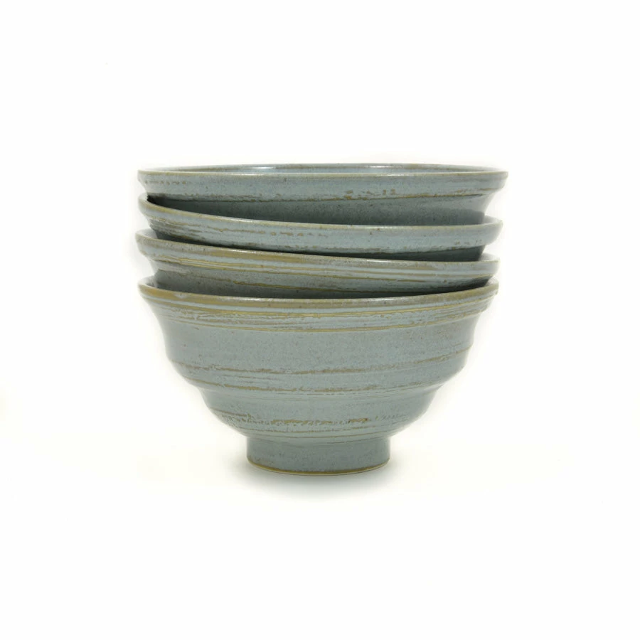 This blue-grey glazed ceramic noodle bowl has a beautiful subtle blue-grey hue. The glazed effect has a rustic charm with parts of the ceramic visible on the exterior of the bowl. The shape and size of this Japanese bowl is perfect for serving noodle or ramen dishes.