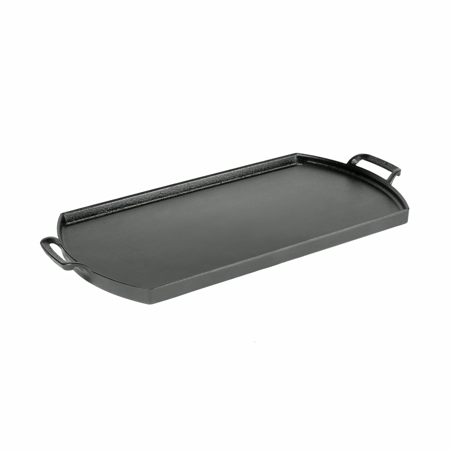 With handles on both sides, this double burner is easy to carry and can be used on any cooking surface – stovetop, open fire and on an induction cooker. The low sides make it easy when flipping food, with a drip tray to catch any spills and grease, and a triple seasoning offers a natural non-stick finish.