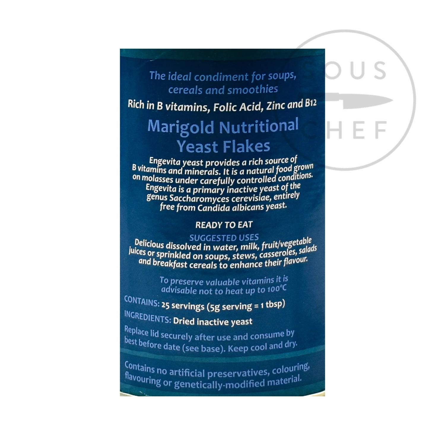 Marigold Engevita nutritional yeast flakes are a vegan food with a cheesy, nutty taste, made from primary inactive yeast. Sprinkle the nutritional yeast flakes over pasta, soups, stews and salads to bring a vegan parmesan cheese taste, or dissolve in milk and water.