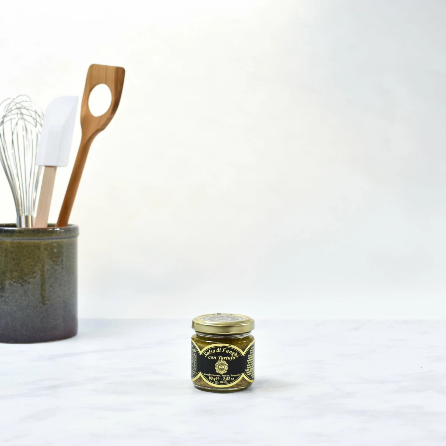 The truffle & mushroom salsa produced in Acqualagna, the home of Italy’s truffle market, by Marini Azzolini who have been collecting and producing truffle products for over 50 years.