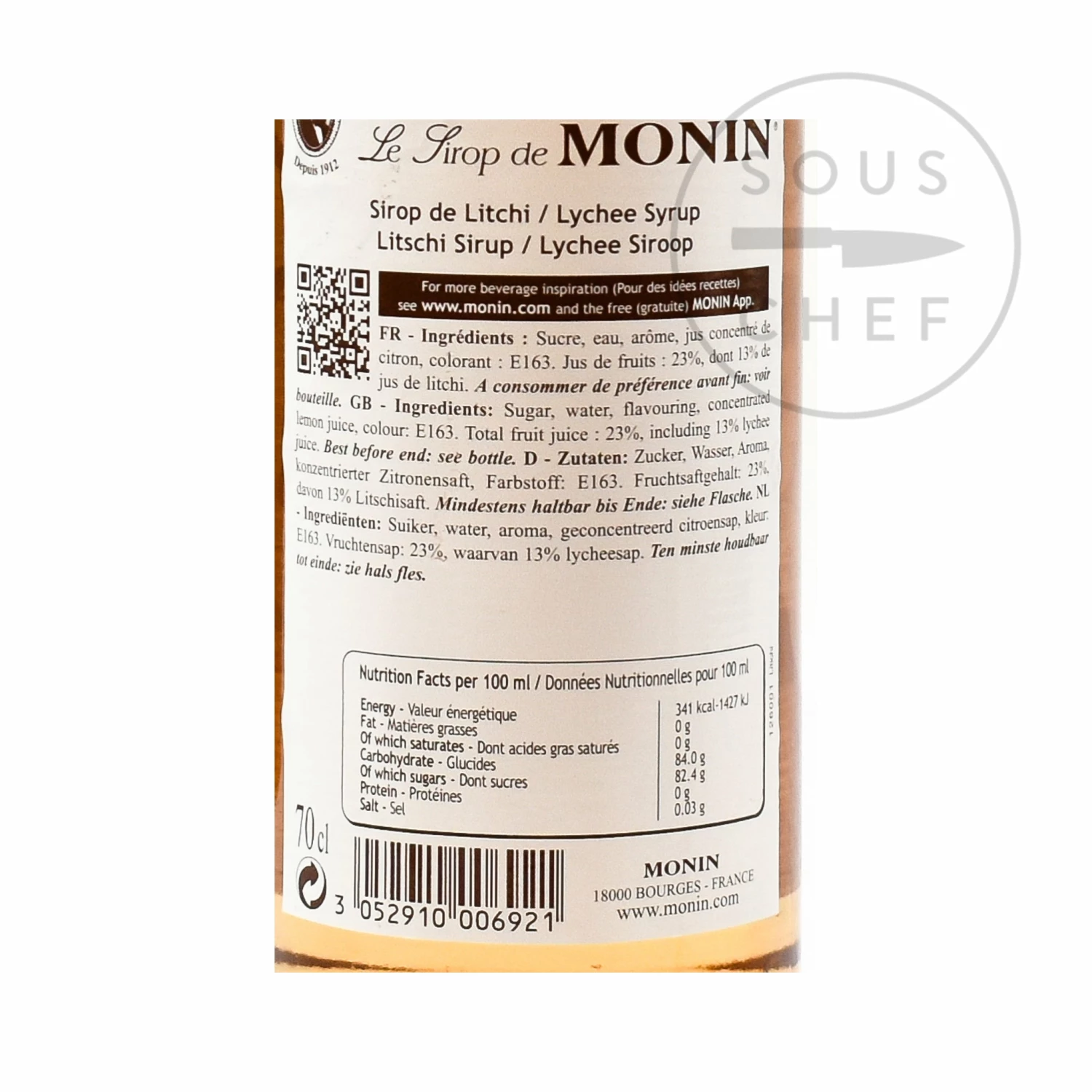 Monin lychee syrup is a great addition to your cocktail cabinet, or indeed for use in icings or jellies.