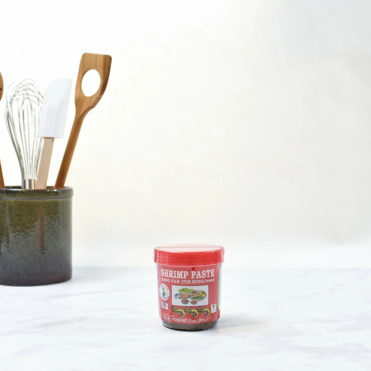 An essential component to a Thai larder, shrimp paste can be used to transform stir fries, curries, dipping sauces and fish cakes. Shrimp paste’s salty, fishy flavour brings richness and complexity to dishes.