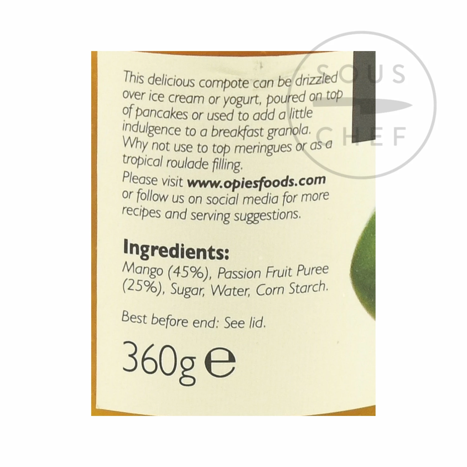 Spoon Opie’s Mango & Passion Fruit Compote over ice cream or yoghurt. Or serve a dollop on pancakes with a shaving of dark chocolate. It’s also excellent on breakfast granola with a handful of fresh fruit.