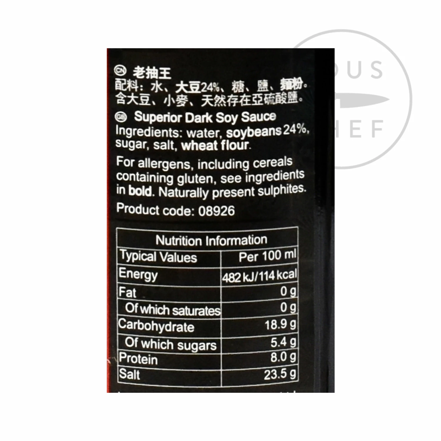Dark soy sauce is a key ingredient of Chinese cooking, getting its rich, mellow flavour and deep colour from a lengthy soybean fermentation process. The aging of wheat, yeast and sugar results in distinctive salty, spicy, caramel, malt-flavours famous in red-braised dishes. Use dark soy sauce to add colour and depth of flavour to meat marinades, slow-cooked dishes such as Chairman Mao’s pork and dipping sauces.