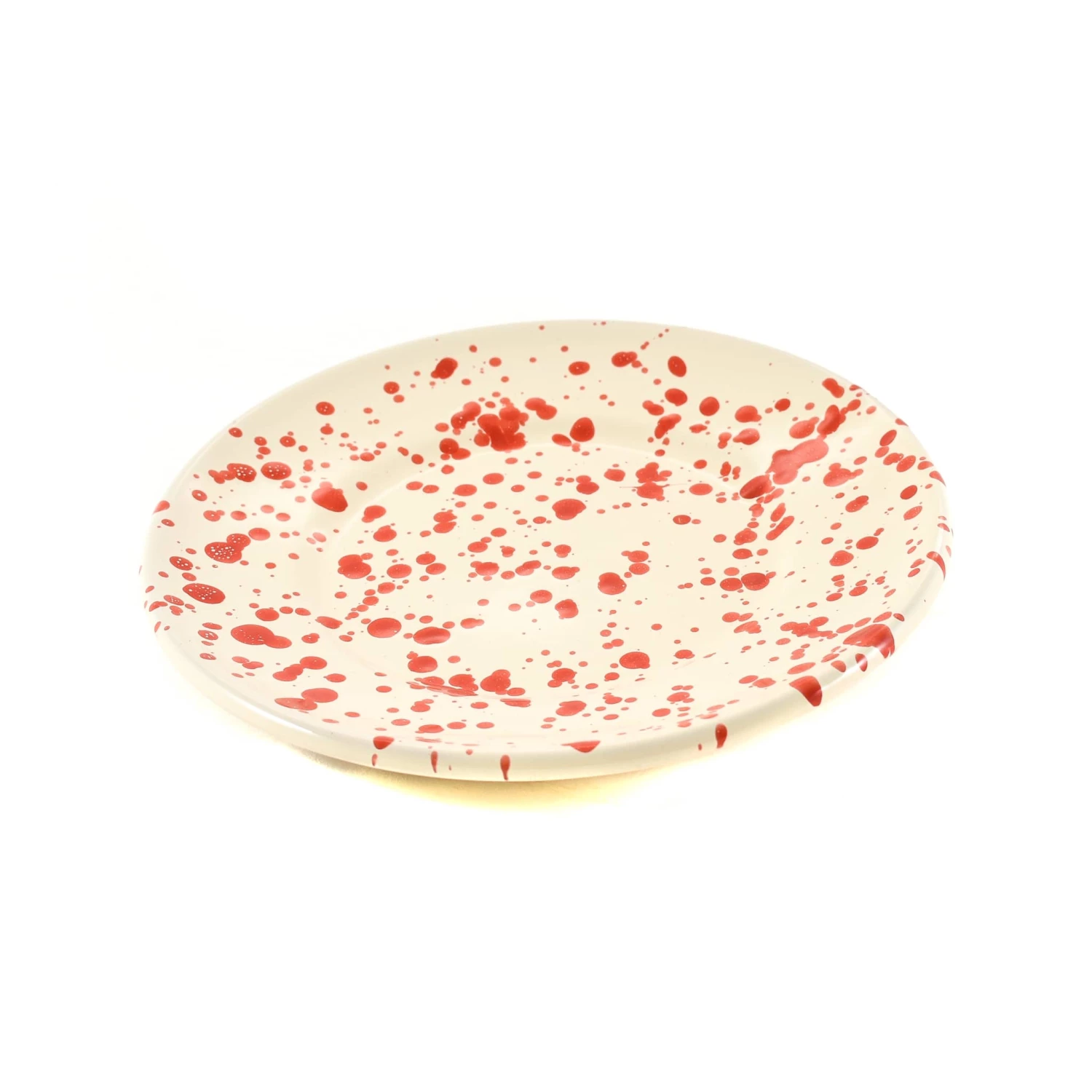 The Puglia red splatter side plate is the stylish way to serve bruschetta, burrata and fresh fig salads. Made in Italy, the modern crockery is inspired by the sea, with a striking splatter design all over.