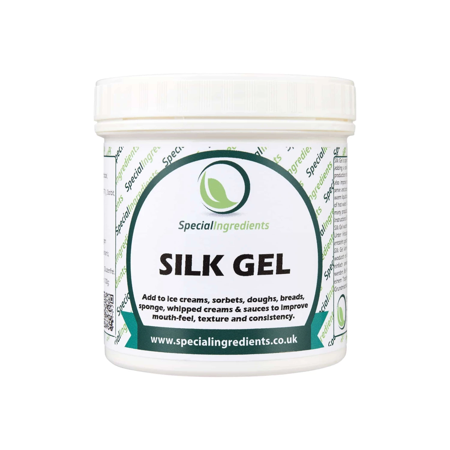Silk gel gives your homemade ice cream and fruit sorbets a smooth mouthfeel. Adding a small amount of silk gel to your fruit or custard base produces a silkier final texture and consistency which is easier to scoop and serve.