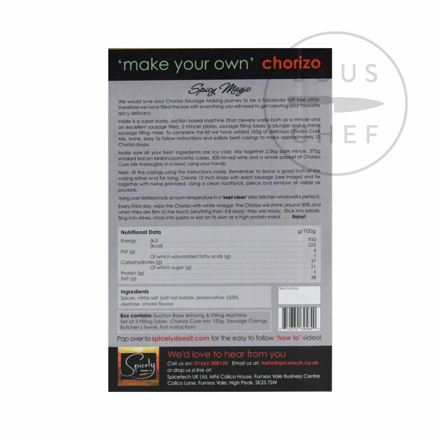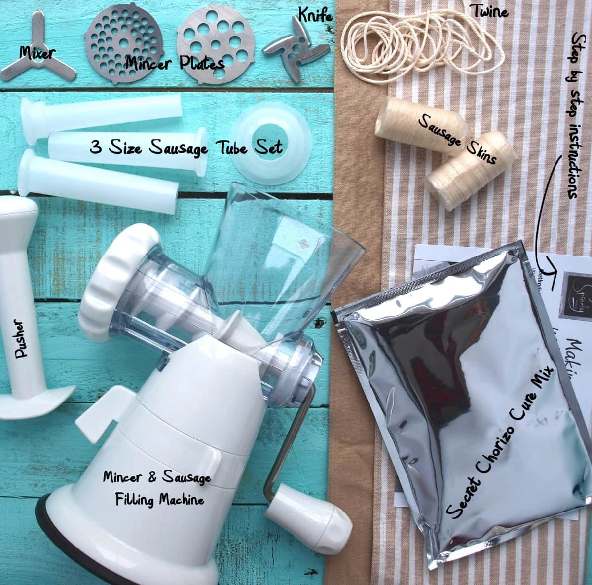 The chorizo making kit contains: