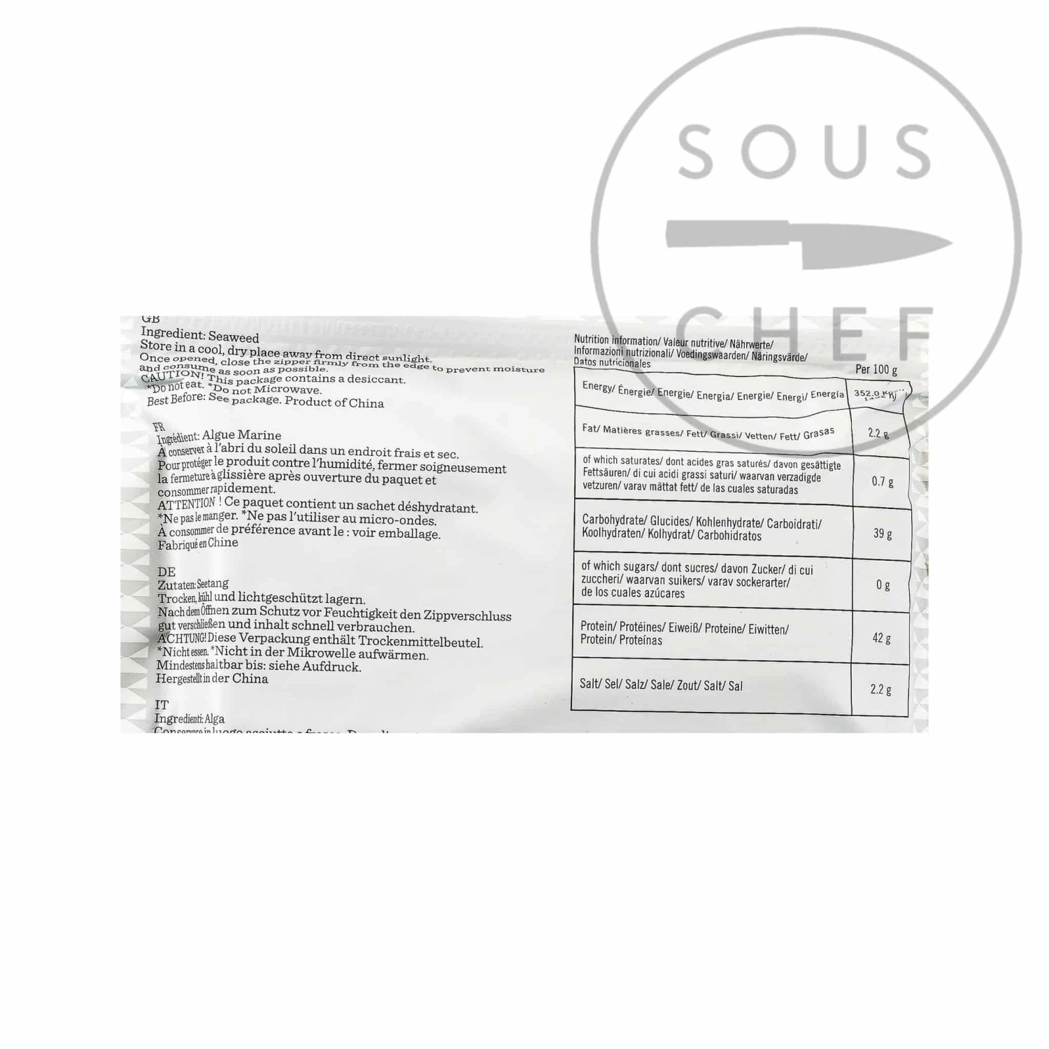 Ingredients: seaweed. Store in a cool, dry place away from direct sunlight.