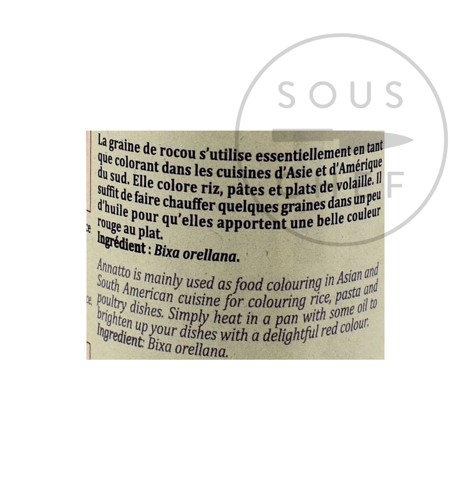 Terre Exotique’s annatto seeds are commonly used as a striking food colouring. Use the bright red seeds to add a deep red hue to rice, noodles or use to make Mexican achiote paste (along with cumin, pepper and garlic) for a vibrant, warming marinade. To release the seeds’ colour, simply heat them in a pan with some oil then infuse into your recipe. The seeds have a mild flavour, which makes them very adaptable to different recipes.