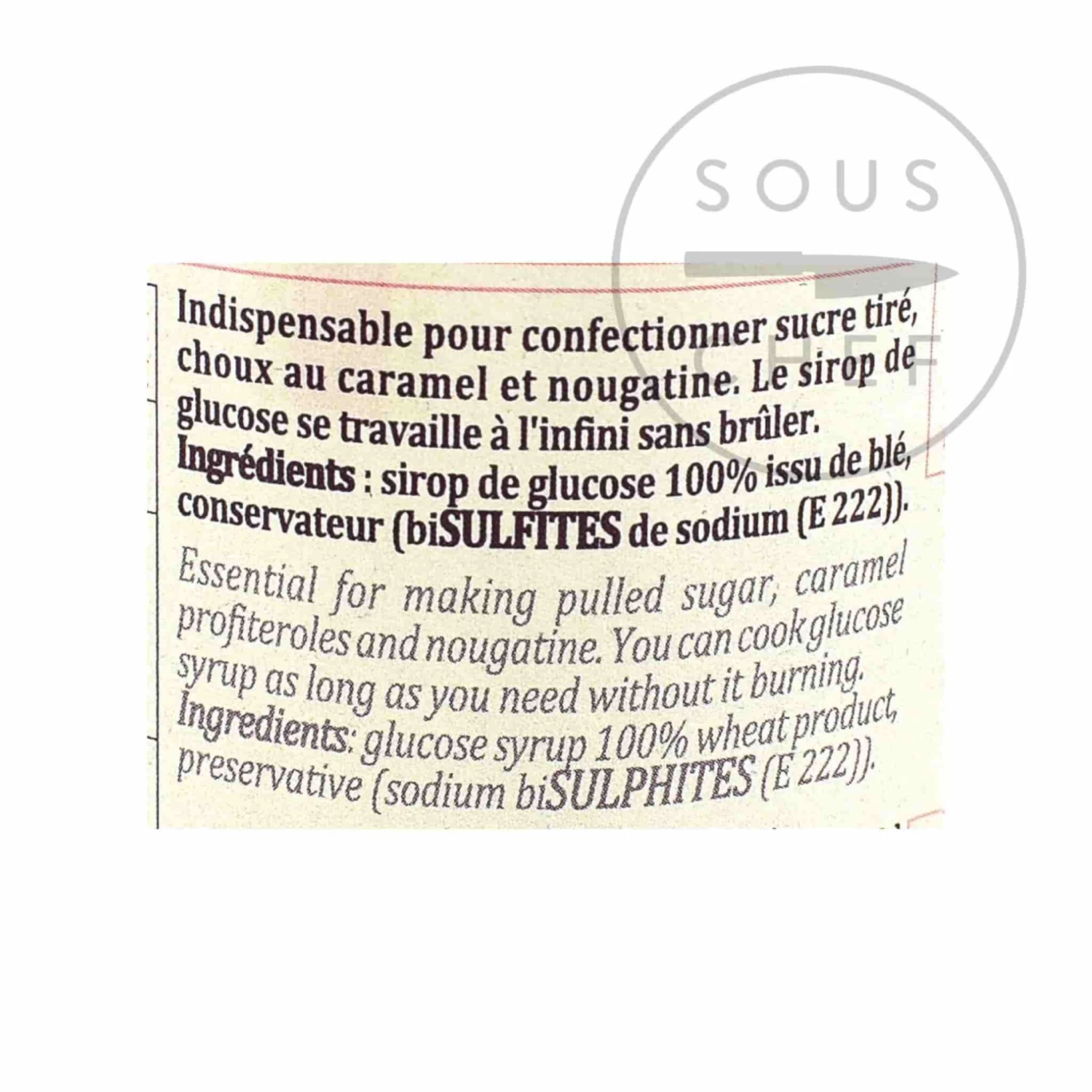 Ingredients: Glucose syrup 100% wheat product, preservative (sodium bi-sulphites (E222).