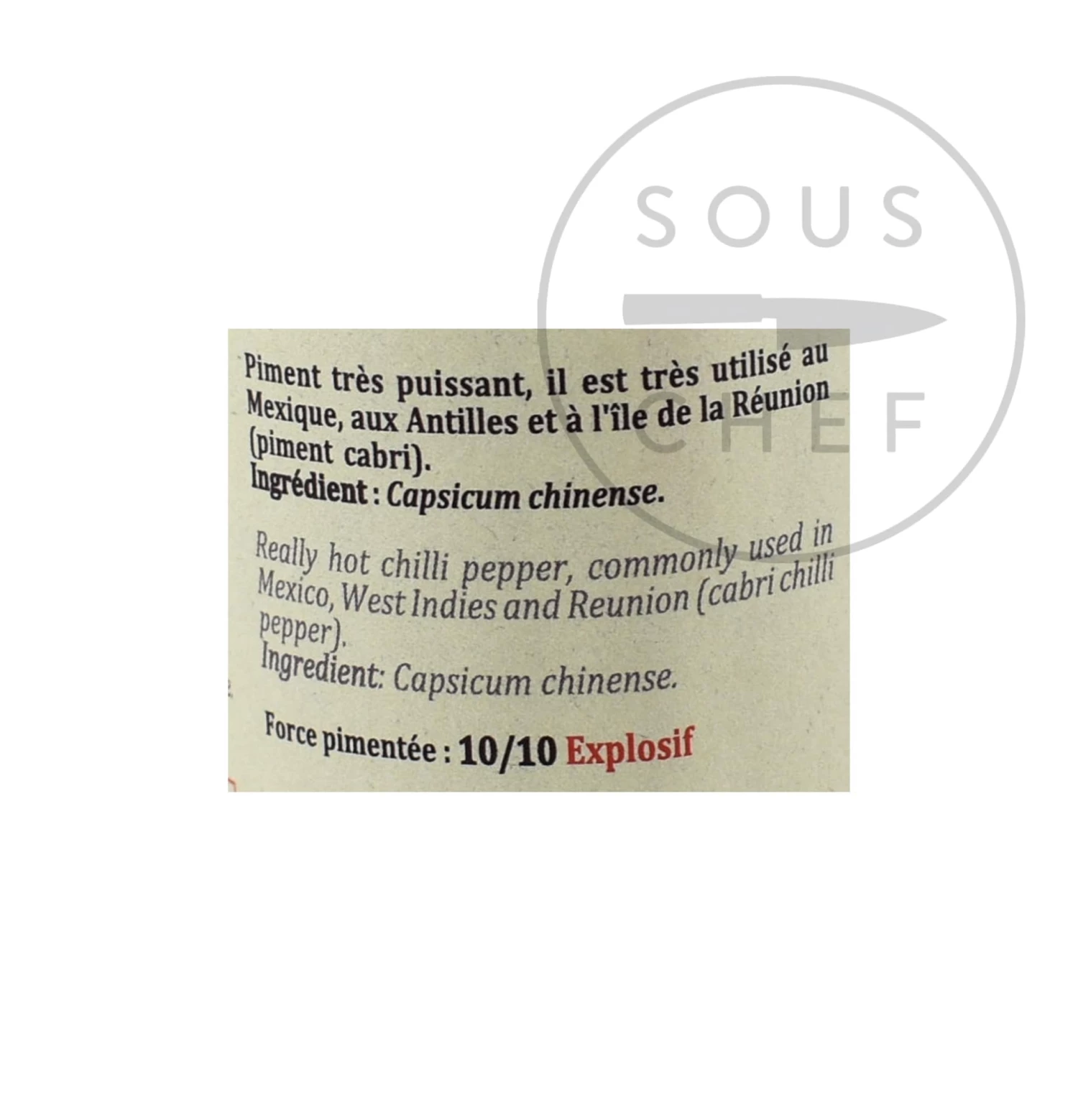 Terre Exotique’s habanero chilli pepper has a volcanic heat and fruity-citrus notes. Originating from Mexico, the habanero chilli pepper is extremely powerful, rating 9/10 on the Scoville scale so should be used sparingly!