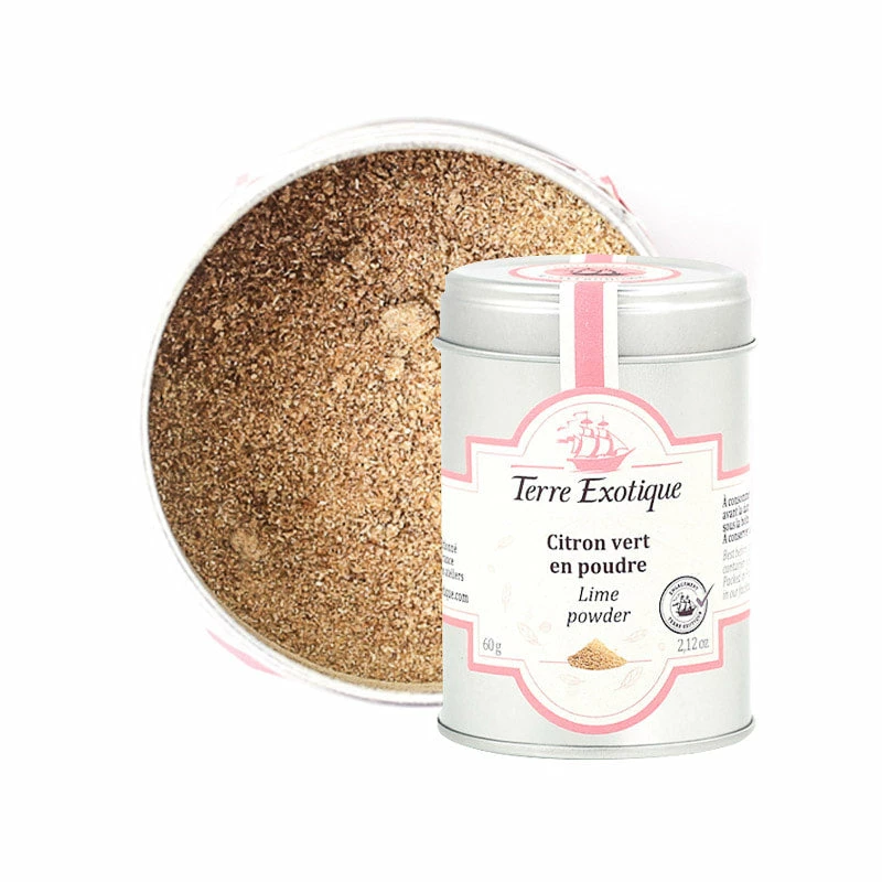 Terre Exotique’s organic dried lime powder gives an instant burst of citrus flavours to coconut desserts and shellfish. Made by drying and grinding lime peel, this powder is intense with citric aromas and flavours. This is a pure fruit flavour, with no added sugar.