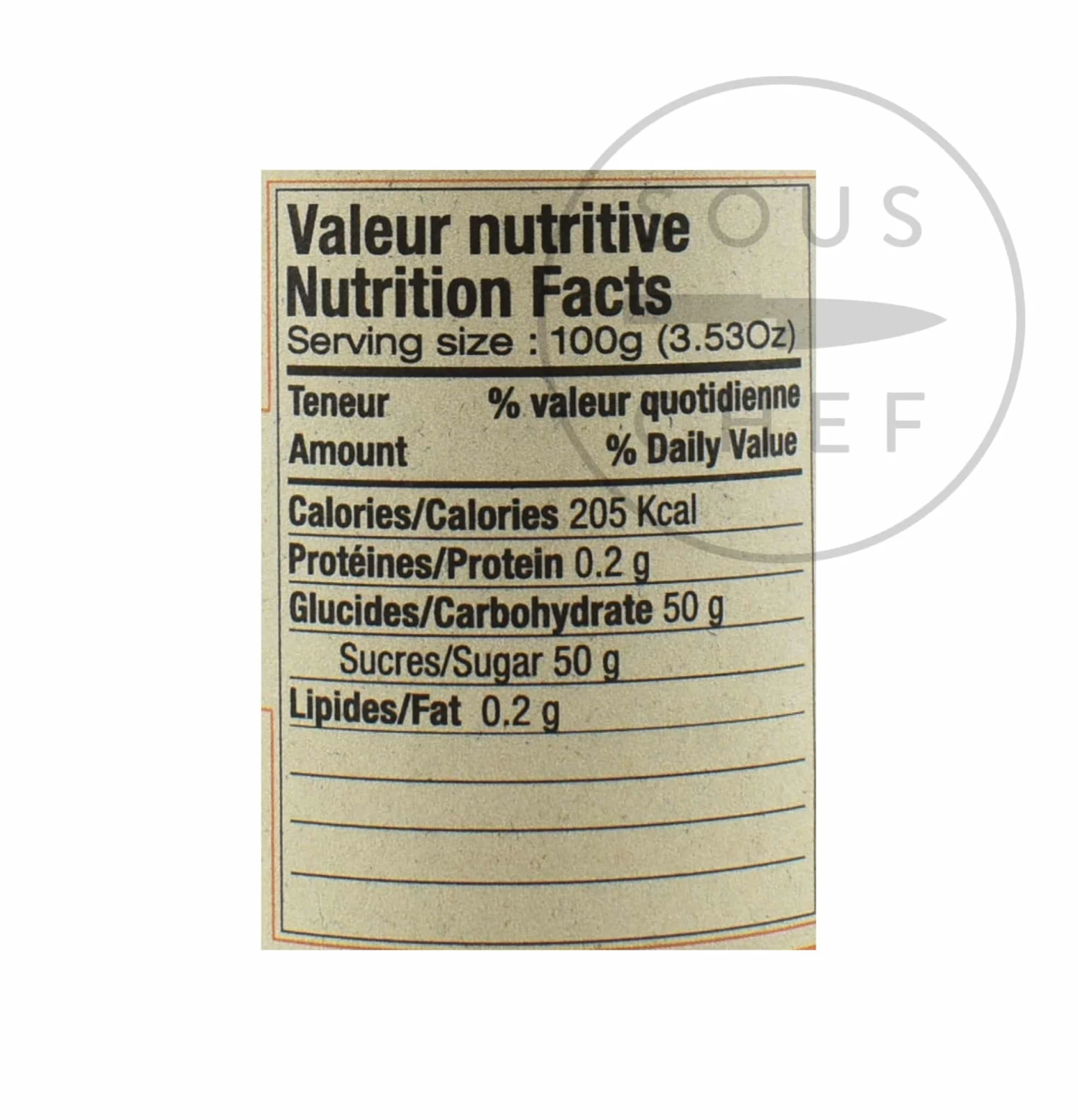 Ingredients: Pineapple 54%, cane sugar, fruits sugar, white Oc wine, gelling: fruit pectin, Penja pepper 0.25%.