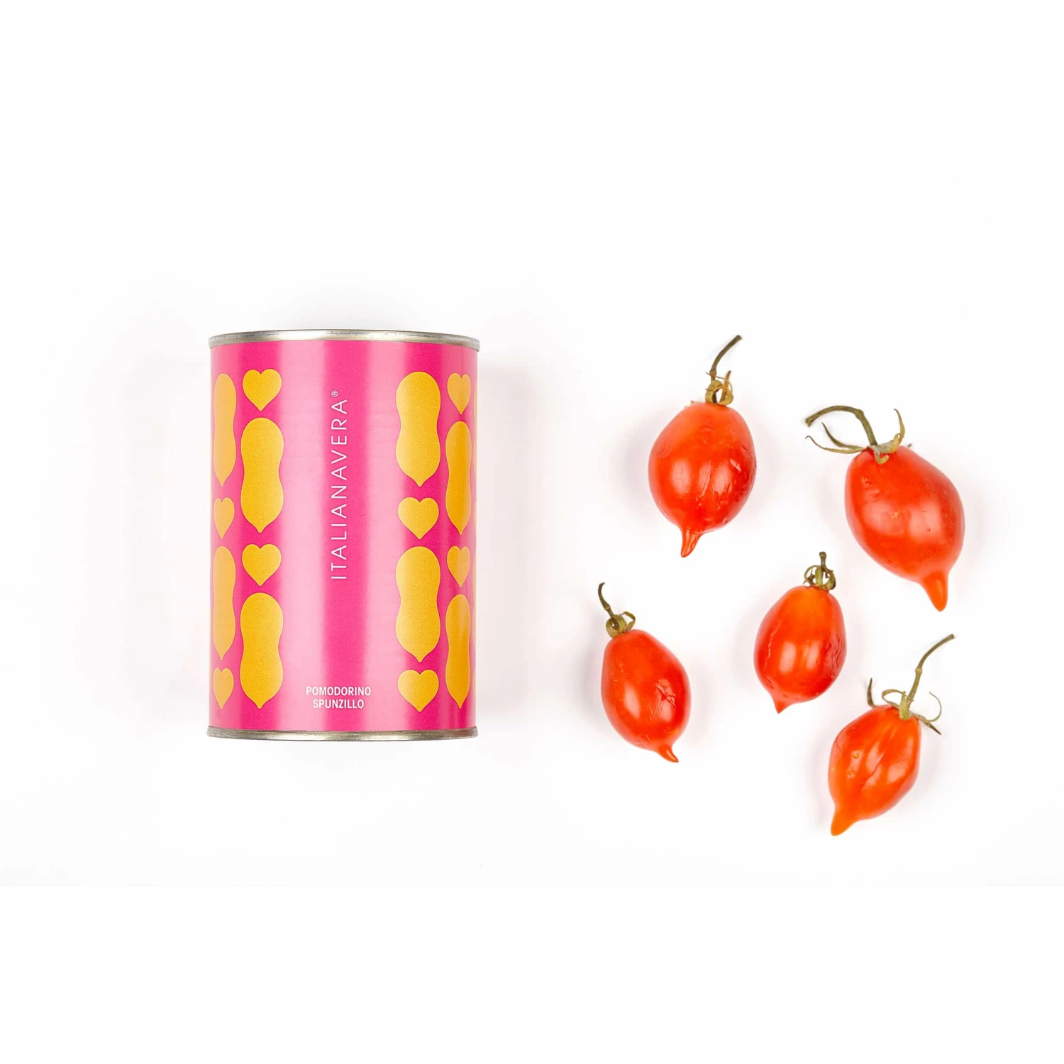 Italianavera spunzillo tomatoes are oval shaped, with a distinctive tip, sweet flavour and juicy texture. Spunzillo is an ancient name farmers gave to Piennolo tomatoes harvested in the Vesuvian area of Italy. Here, they are immersed in juice which makes that freshly picked flavour last even longer. Try using these vibrant tomatoes (that come in an equally fun tin) in a variety of ways:
