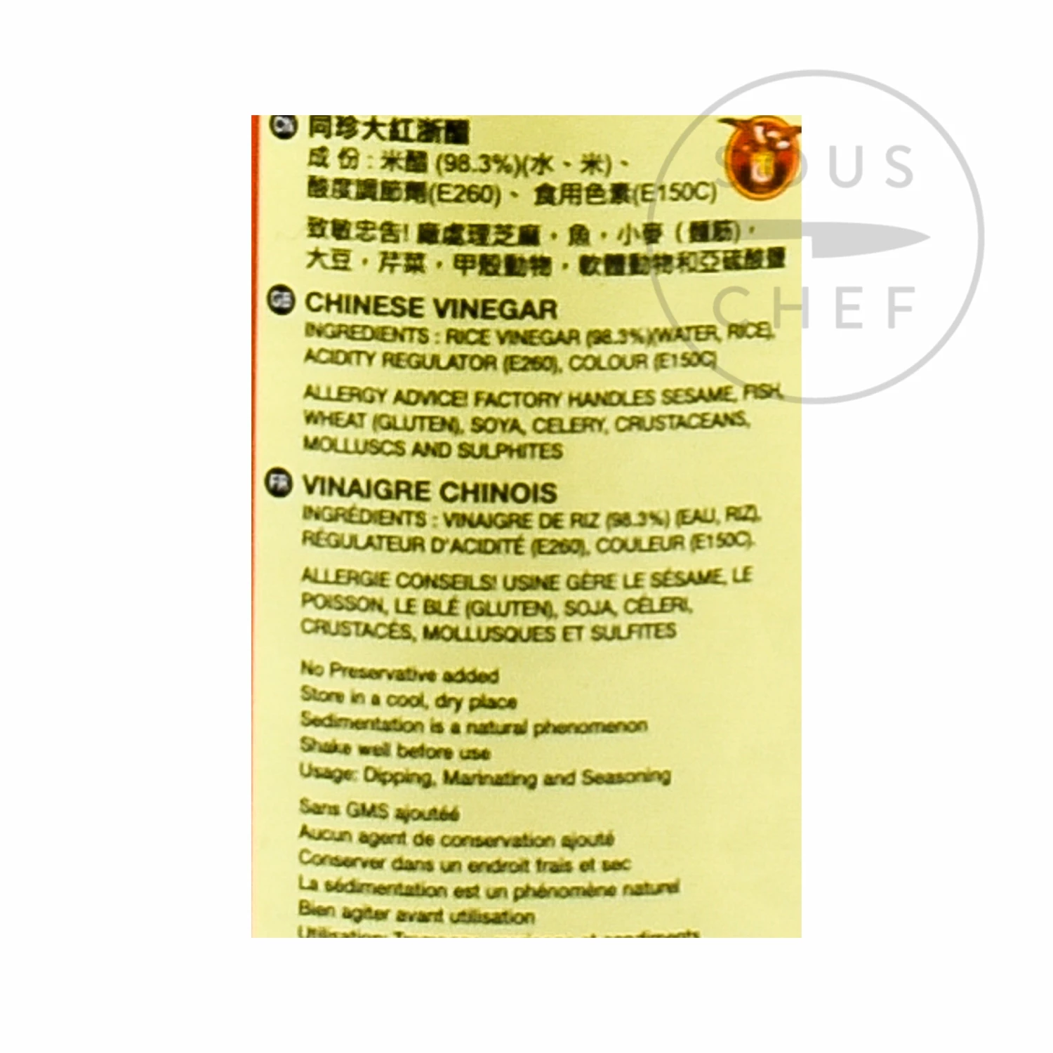 Ingredients: Vinegar (Rice, Water), Acetic Acid: E260; Caramel: E150c.